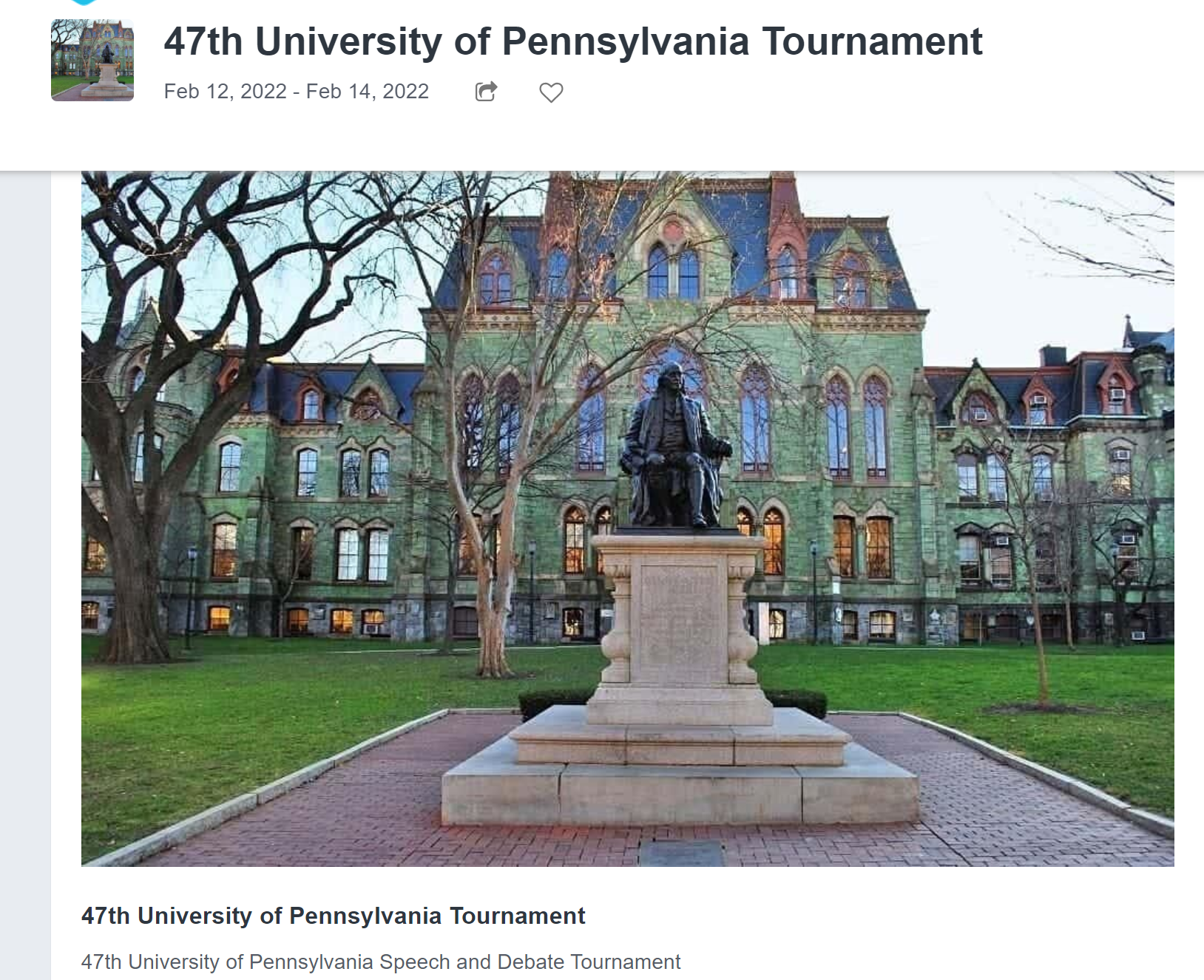 宾夕法尼亚大学美式辩论邀请赛 (NSDA)
